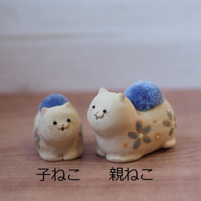 陶器猫「ねこのひげ枕」香箱座りタイプ 子ねこ 青花柄です。