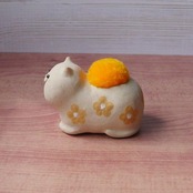 陶器猫「ねこのひげ枕」香箱座りタイプ 親ねこ 黄花柄です。
